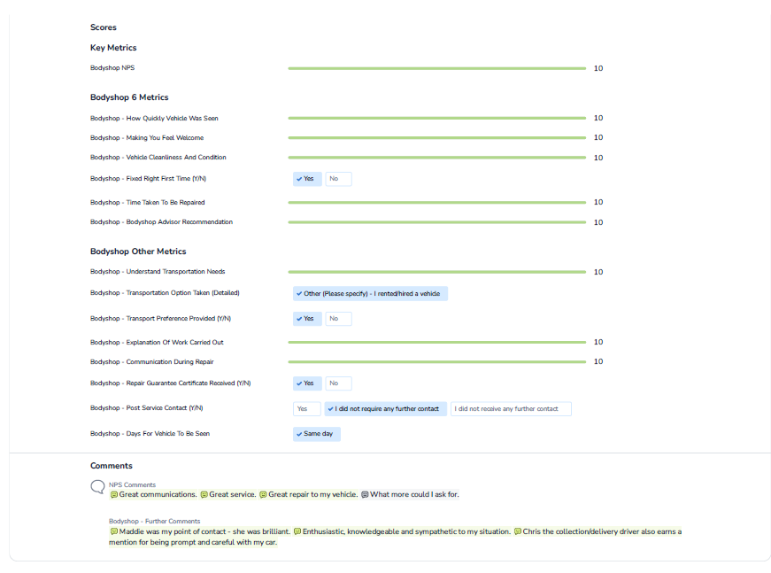 The customer’s comments were particularly impressive, highlighting great communication, great service, and a great repair. Maddie received special praise for her enthusiasm, knowledge, and empathy, and Chris was also acknowledged for his prompt and careful approach during collection and delivery. This kind of feedback really demonstrates the strength of your team culture and commitment to customer care.